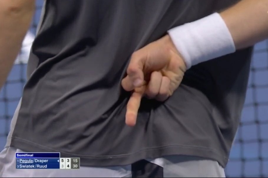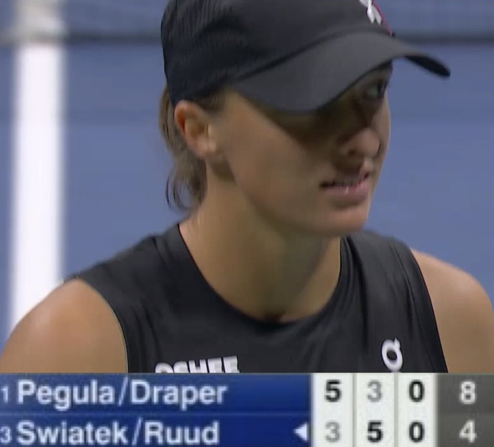 斯瓦泰克比赛中又对男选手(德雷珀)得分。她在大满贯女单、女双和混双都进过决赛(女单冠军、女双亚军、混双决赛?)。