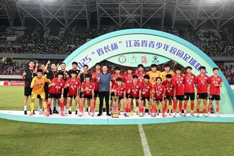 8月6日,有“苏小超”之称的2025“省长杯”江苏省青少年校园足球联赛高中男子组冠亚军决赛(第二回合)在苏州市体育中心举行,共有28018名观众来到现场,观看了这场高中生足球比赛。许昆林也出席并为冠军颁奖。